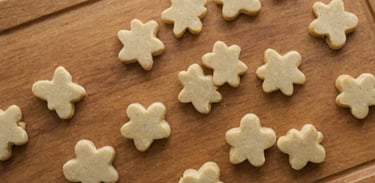 Roll out to 1/4-inch thickness and cut shapes that are appropriate for your dog's size.